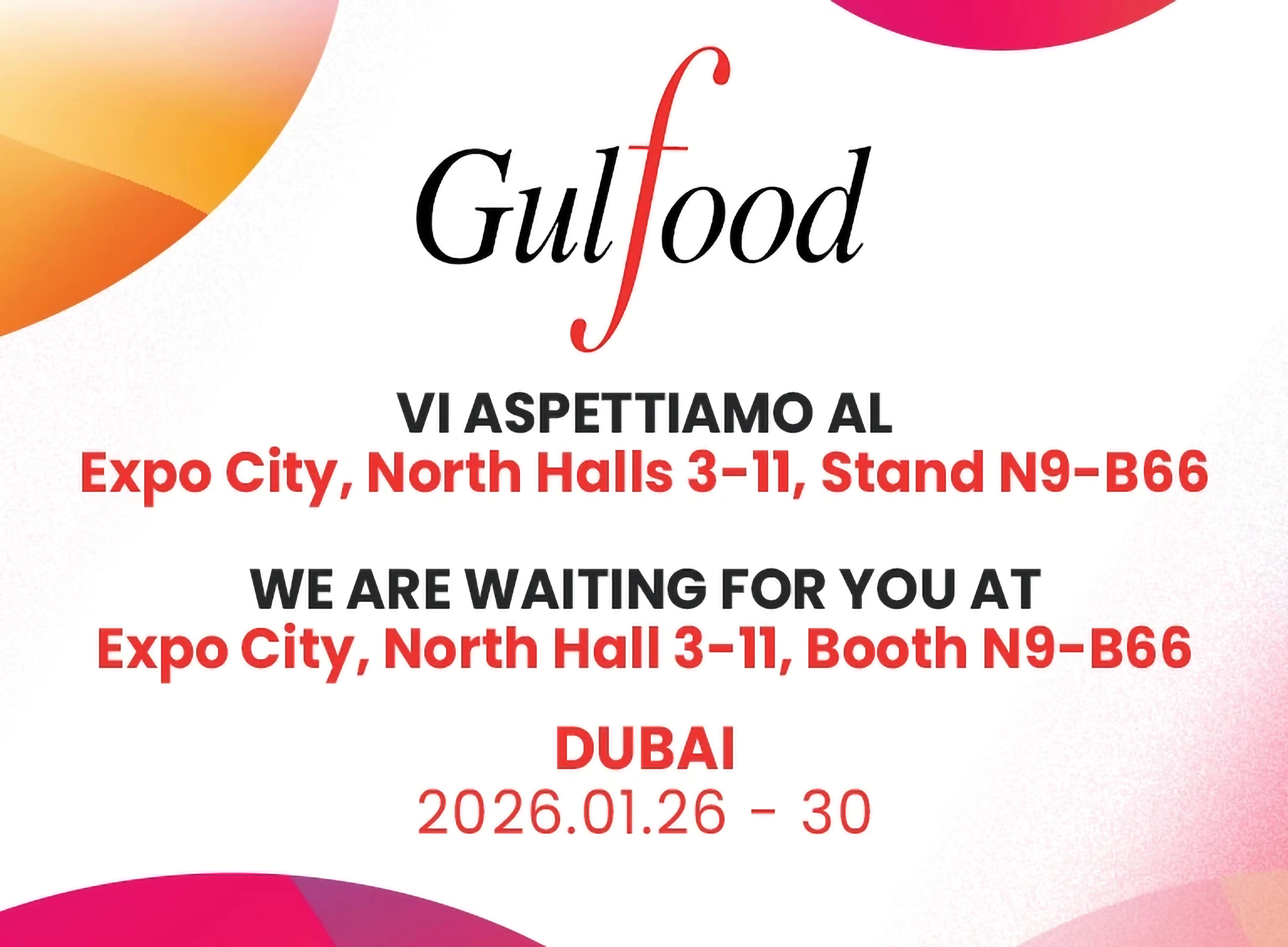 We will be present from January 26th to 30th at Gulfood in Dubai.