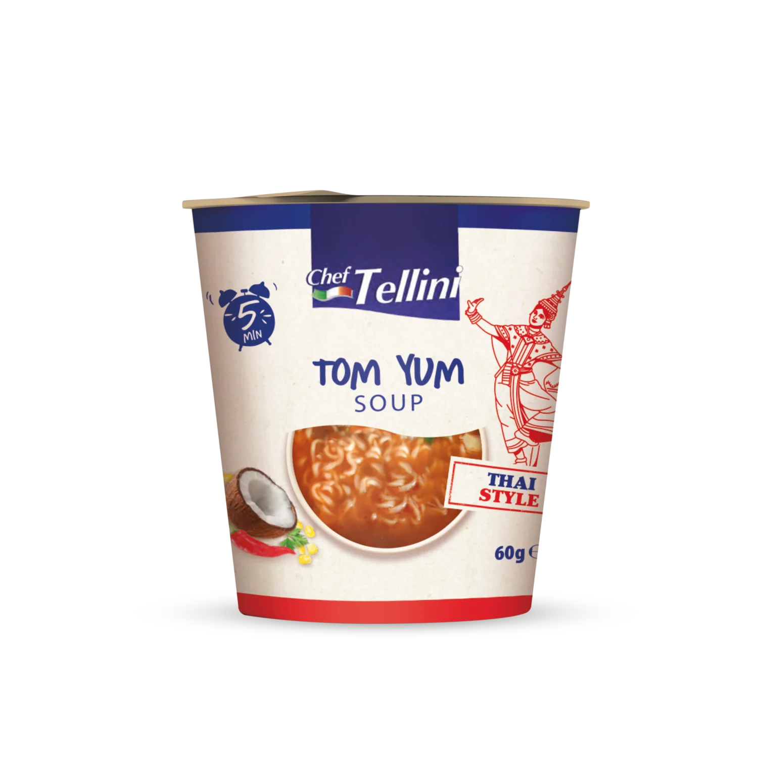 Pasta 67% (semola di grano duro), grasso di cocco in polvere (sciroppo di glucosio, grasso vegetale (cocco), proteine del latte, stabilizzante: E340, emulsionante: E471), pomodoro, fecola di patate, salsa di soia in polvere 3,4% (salsa di soia (soia, frumento, sale) maltodestrina, sale), latte di cocco in polvere 3,3% (latte di cocco, maltodestrina, caseinato di sodio(contiene latte)), sale, zucchero di canna, black fungus (Auricularia), aromi naturali, mais liofilizzato 1%, cipolla, curry, succo di lime in polvere (succo di lime, maltodestrina), zenzero, aglio, coriandolo 0,3% (semi e foglie), bietola rossa, erba cipollina, peperoncino 0,1%. Può contenere tracce di uovo e senape.